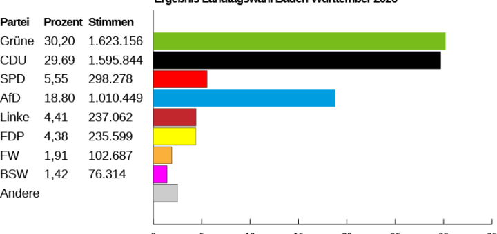 Die Ergebnisse im Land Das Ehebett in der Wahlarena war schon längst aufgeschlagen, fraglich war nur, wer der Haushaltsvorstand werden würde: Hagel oder Özdemir? In der Wahlnacht war dann klar: Bei einem Patt von 56:56 Abgeordneten war der 3-Prozent-Prognosevorsprung von Özdemir aus der ersten Hochrechnung auf 0,5% geschmolzen. Für die...