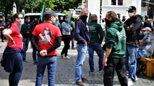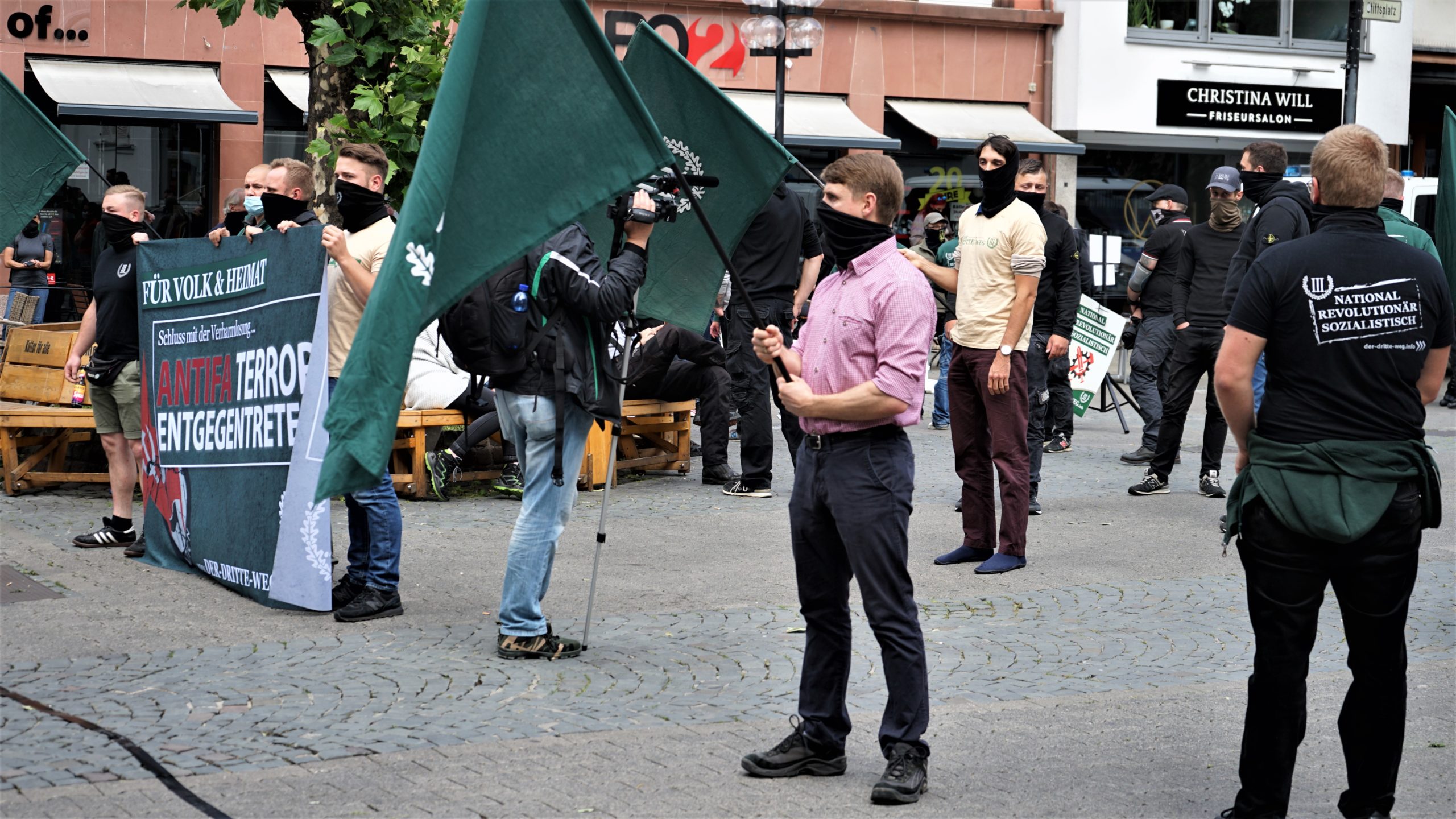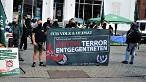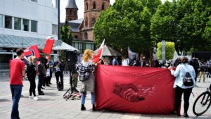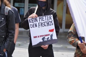 200-300 Menschen traten am 07.06.20 der Nazipropaganda in Kaiserslautern entgegen. Die neonazistische Kleinstpartei „Der III. Weg“ hatte zu einer Kundgebung am Platz vor der Stiftskirche aufgerufen. Rund 60 Parteimitglieder, zum Teil aus dem gesamten Bundesgebiet angereist, und Sympathisanten kamen so in der Innenstadt zusammen. Anlass der Zusammenrottung war der Brand eines Pkw auf dem Privatgrundstück des Parteivorsitzenden Klaus Armstroff am 02.06. in Weidenthal. Hinter dem Brand vermuten die Rechtsextremisten „antifaschistischen Terror“. Einer ersten Mitteilung der Ermittlungsbehörden zufolge gehen diese von Brandstiftung aus.