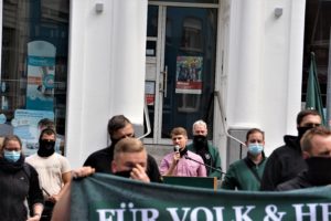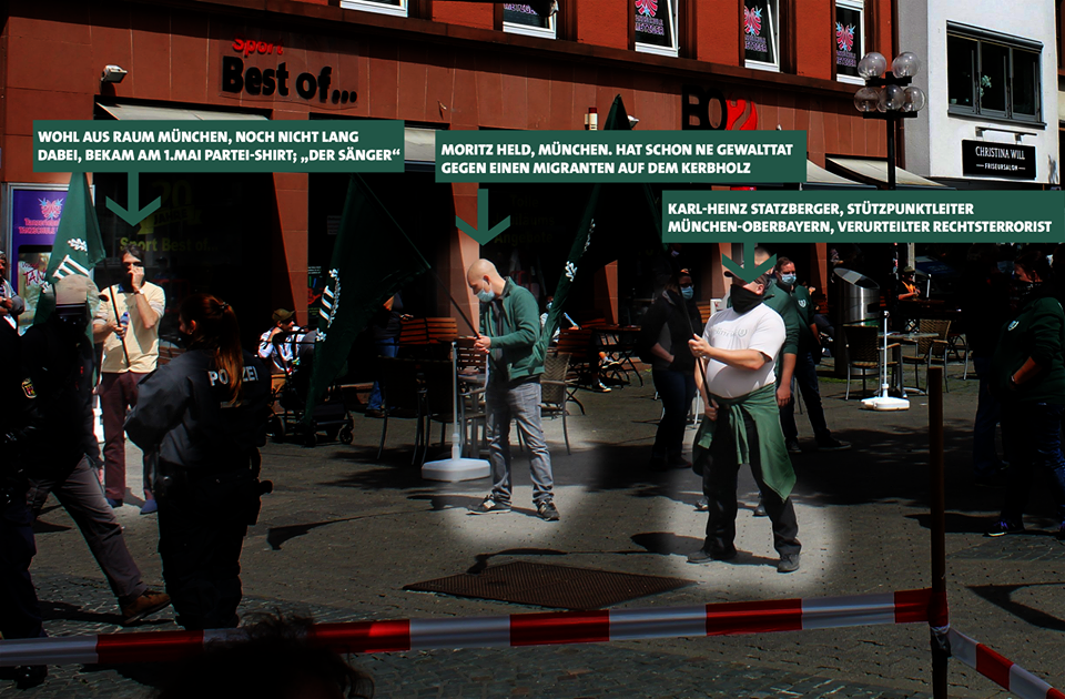 Als weitere Redner fungierten u.a. Julian Bender (Gebietsleiter West) und der wegen schwerer Körperverletzung vorbestrafte Stützpunktleiter Pfalz Mario Matthes. Aus Bayern kam gar eine größere Abordnung der Nazi-Partei angereist. Mit dabei der wegen eines geplanten Terroranschlags zu einer mehrjährigen Haftstrafe verurteilte Karl-Heinz Statzberger (Leiter des Stützpunkts München/Oberbayern).
