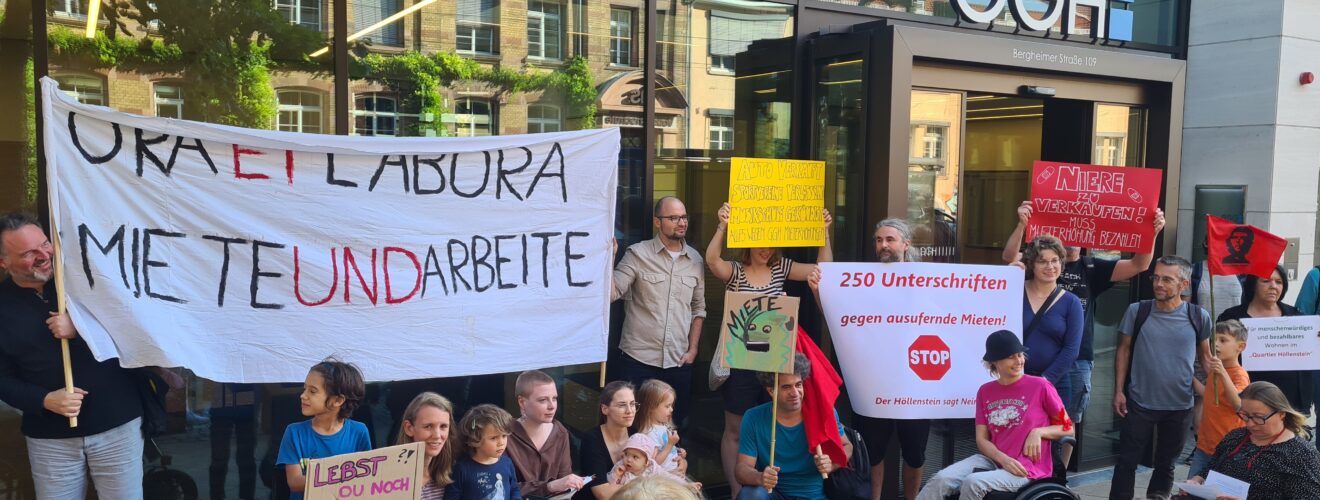 „Wir bleiben dran“ – Mieter:innen des Höllenstein-Quartiers machen mobil Am 19.09. übergaben Mieter:innen des Heidelberger Höllenstein-Quartiers der städtischen GGH (Gesellschaft für Grund- und Hausbesitz mbh) 250 Unterschriften, mit denen sie ihren Protest gegen die Mieterhöhung ausdrückten. Kopien gingen per Mail auch an den ersten Bürgermeister Jürgen Obszuk sowie die Gemeinderatsfraktionen. … Mieterinitiative des Höllenstein-Quartiers der GGH in Heidelberg gegen steigende Kalt- wie Warmmieten weiterlesen