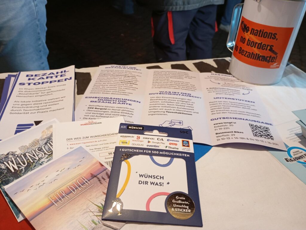 Seit Ende 2024 wird deutschlandweit die Bezahlkarte für geflüchtete Menschen, die unter das ‚Asylbewerberleistungsgesetz‘ fallen, eingeführt. Die Einführung der Bezahlkarte führt sowohl auf Seiten der Geflüchteten, als auch auf der der Verwaltung zu enormen Problemen und wird von Flüchtlingsorganisationen insgesamt als rassistisches Instrument beschrieben. In Mannheim hat sich deswegen die Initiative ‚Bezahlkarte Stoppen Mannheim‘ gegründet, die Tauschbörsen organisiert, um den Geflüchteten zu helfen.