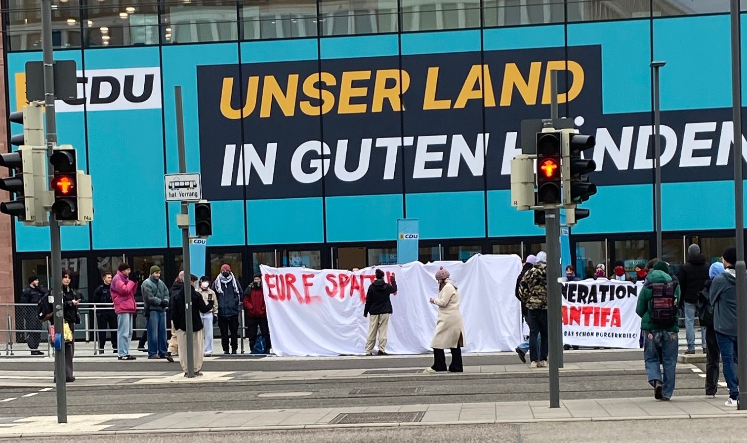 Mit den Aktionen am Freitag wurde deutlich gemacht, dass die Scheinlösungen der CDU nicht hingenommen werden. Grade in der jungen Generation bilden sich Widerstände gegen die CDU, die sich als „demokratische Alternative der AfD (1)“ darstellt.