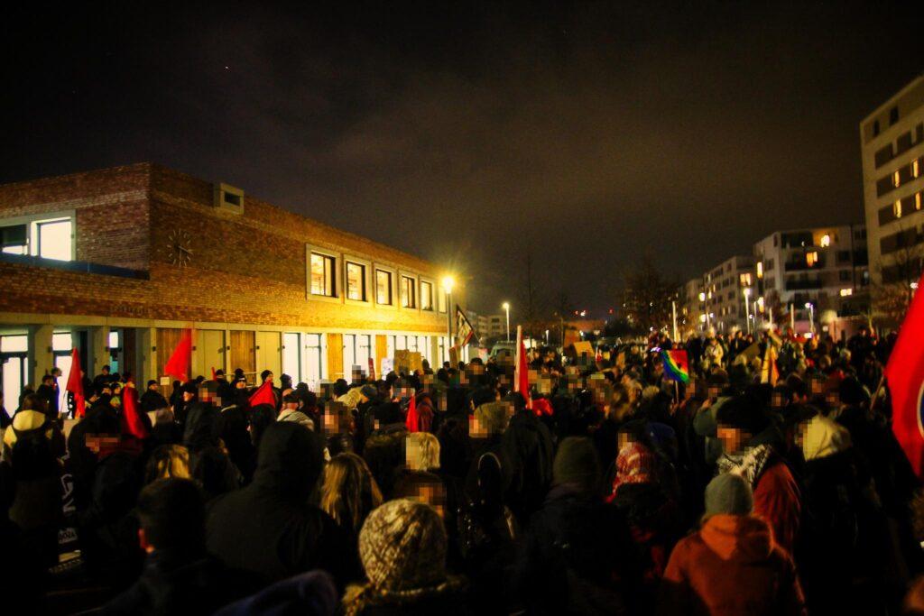Zur antifaschistischen Kundgebung, die auf dem Gadamerplatz direkt gegenüber des Eingangs zum Bürgerhaus Bahnstadt stattfand, hatten verschiedene lokale Gruppen aufgerufen. Nach Redebeiträgen der Antifaschistischen Initiative Heidelberg (AIHD), der Seebrücke Heidelberg und der linksjugend [’solid] Heidelberg sprachen SJD – Die Falken Heidelberg und die Vereinigung der Verfolgten des Naziregimes – Bund der Antifaschist*innen (VVN-BdA) Heidelberg.