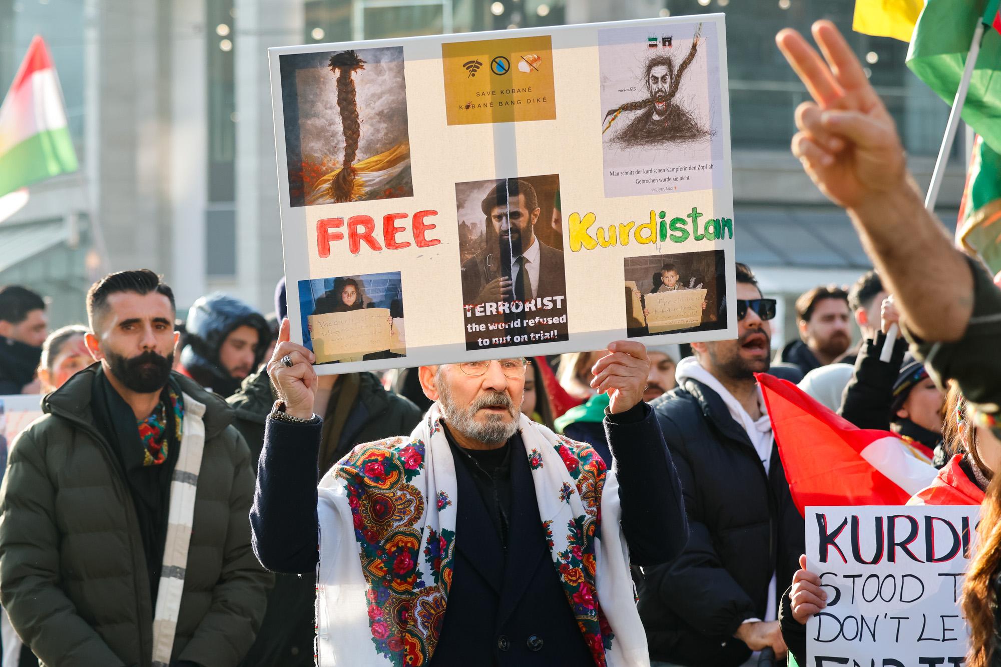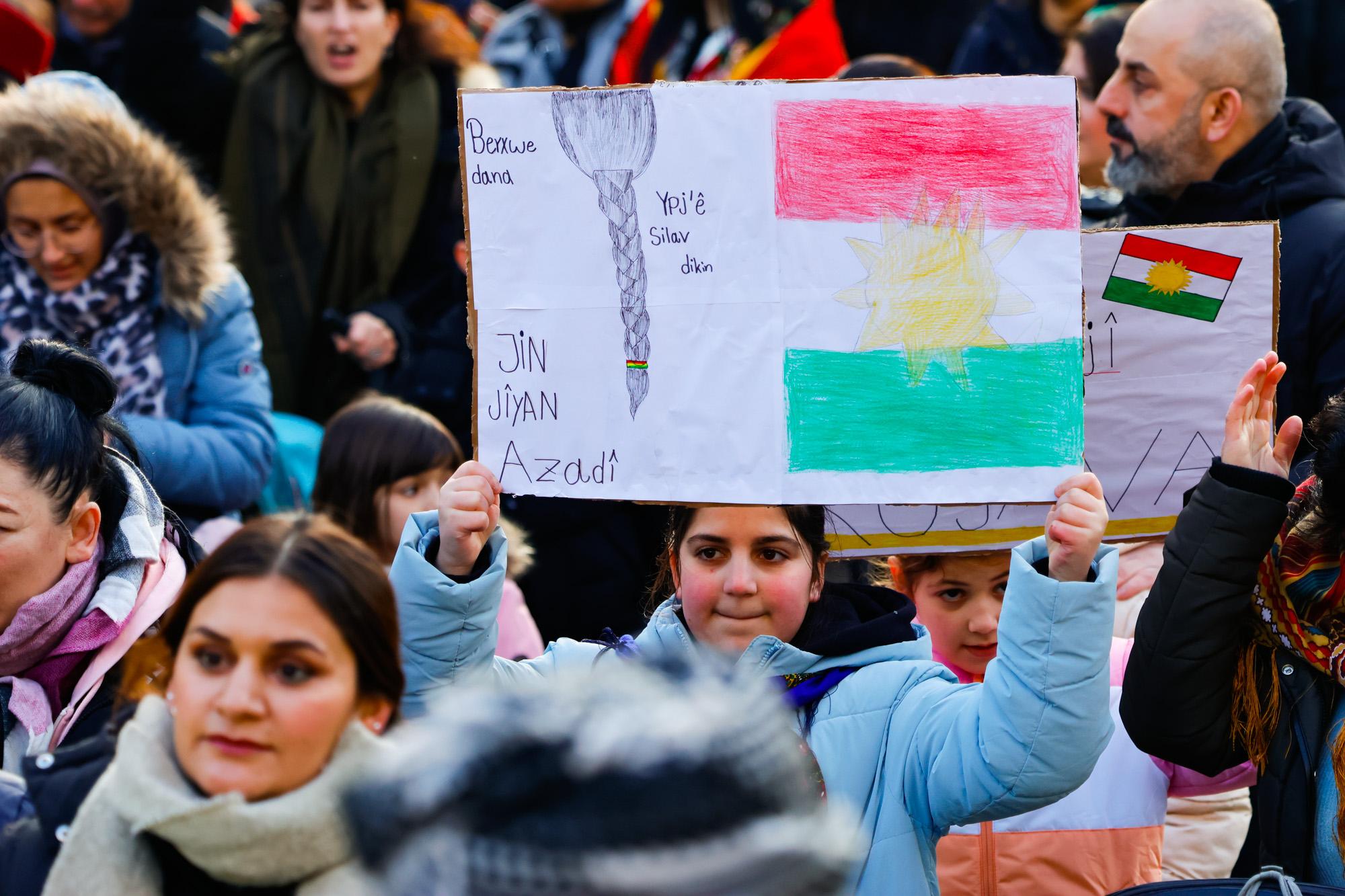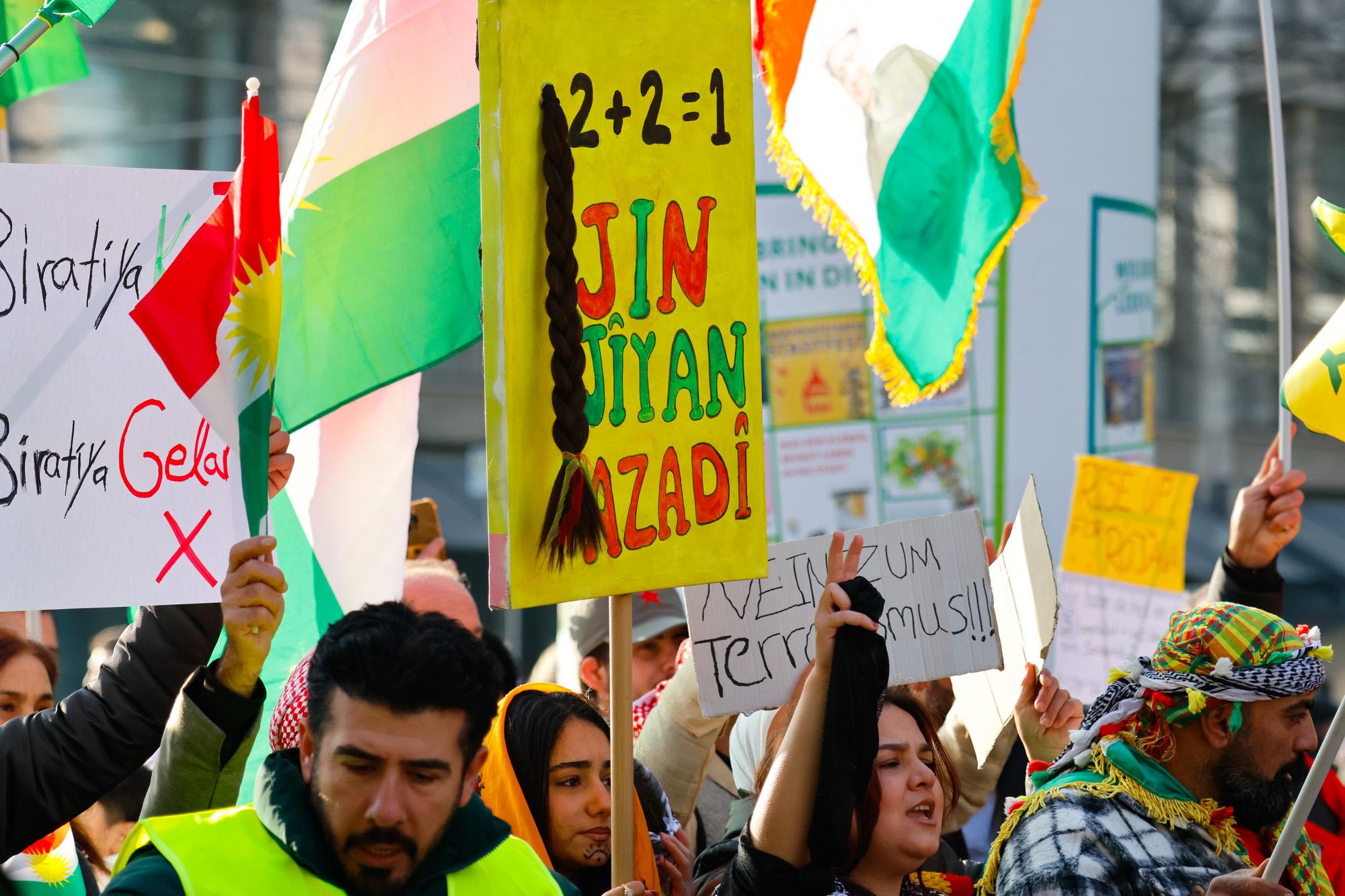 Die türkische Regierung unterstützt die Angriffe auf Rojava, da sie mit dem demokratischen Projekt ein Erstarken des kurdischen Selbstbewusstseins befürchtet, dass sich auf die gesamte Region ausdehnen könnte. In der Türkei gibt es seit Jahrzehnten Konflikte mit der kurdischen Bevölkerung. Die türkische Regierung sieht in den politischen und militärischen Strukturen der Region Rojava eine Ableger der in der Türkei verbotenen PKK. Mit Drohnen, Luftschlägen und Waffen für islamistische Milizen unterstütze die Türkei die Angriffe auf Rojava, so die Kritik der Demonstrant*innen.