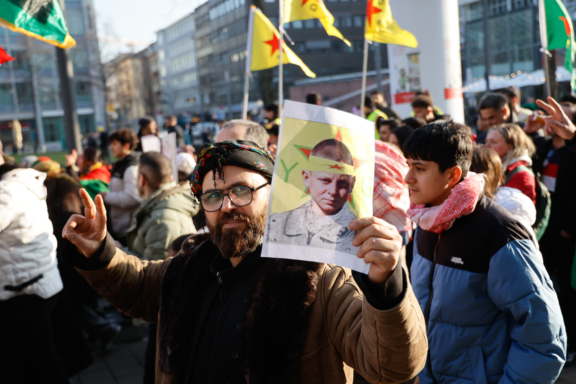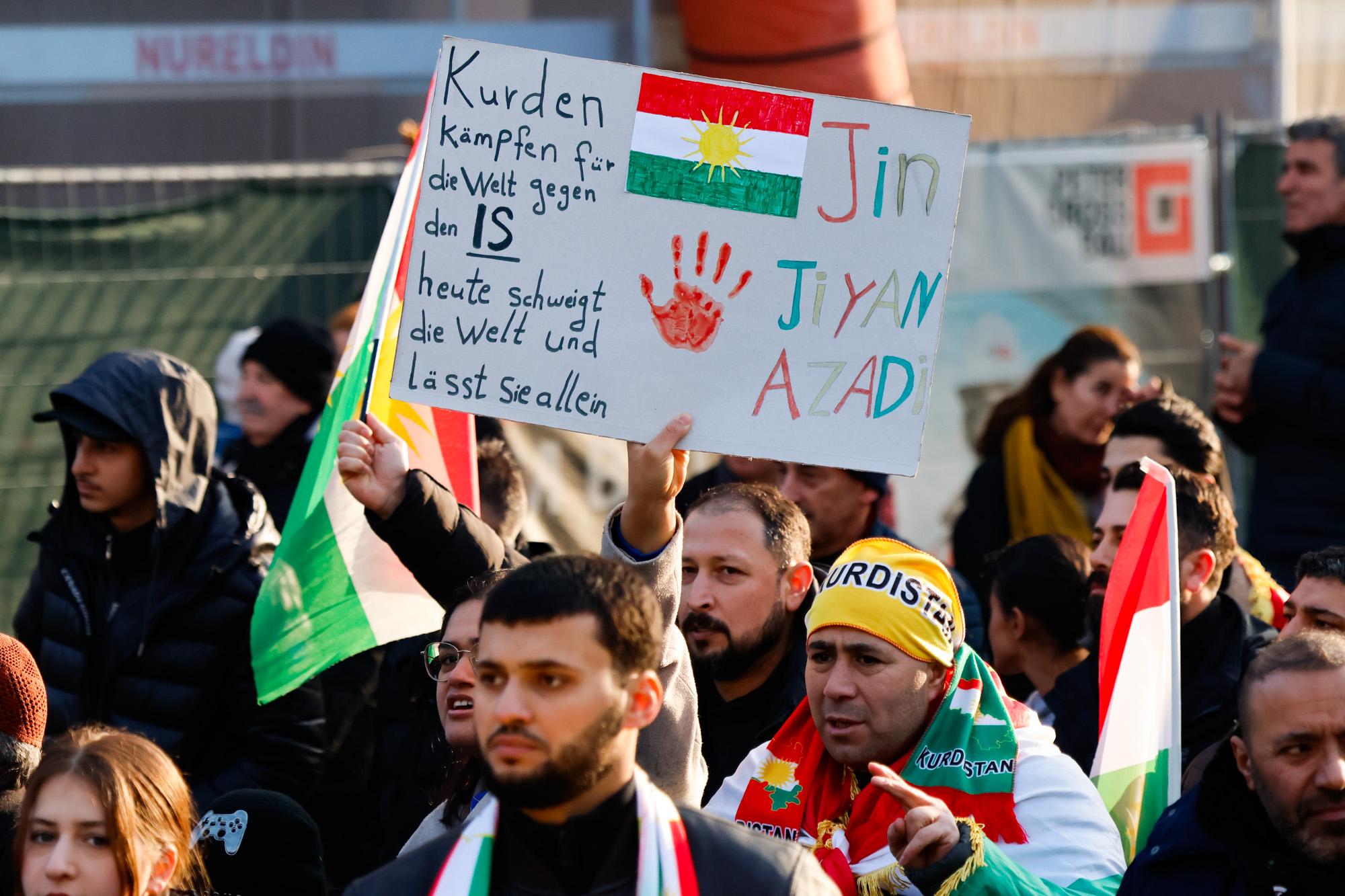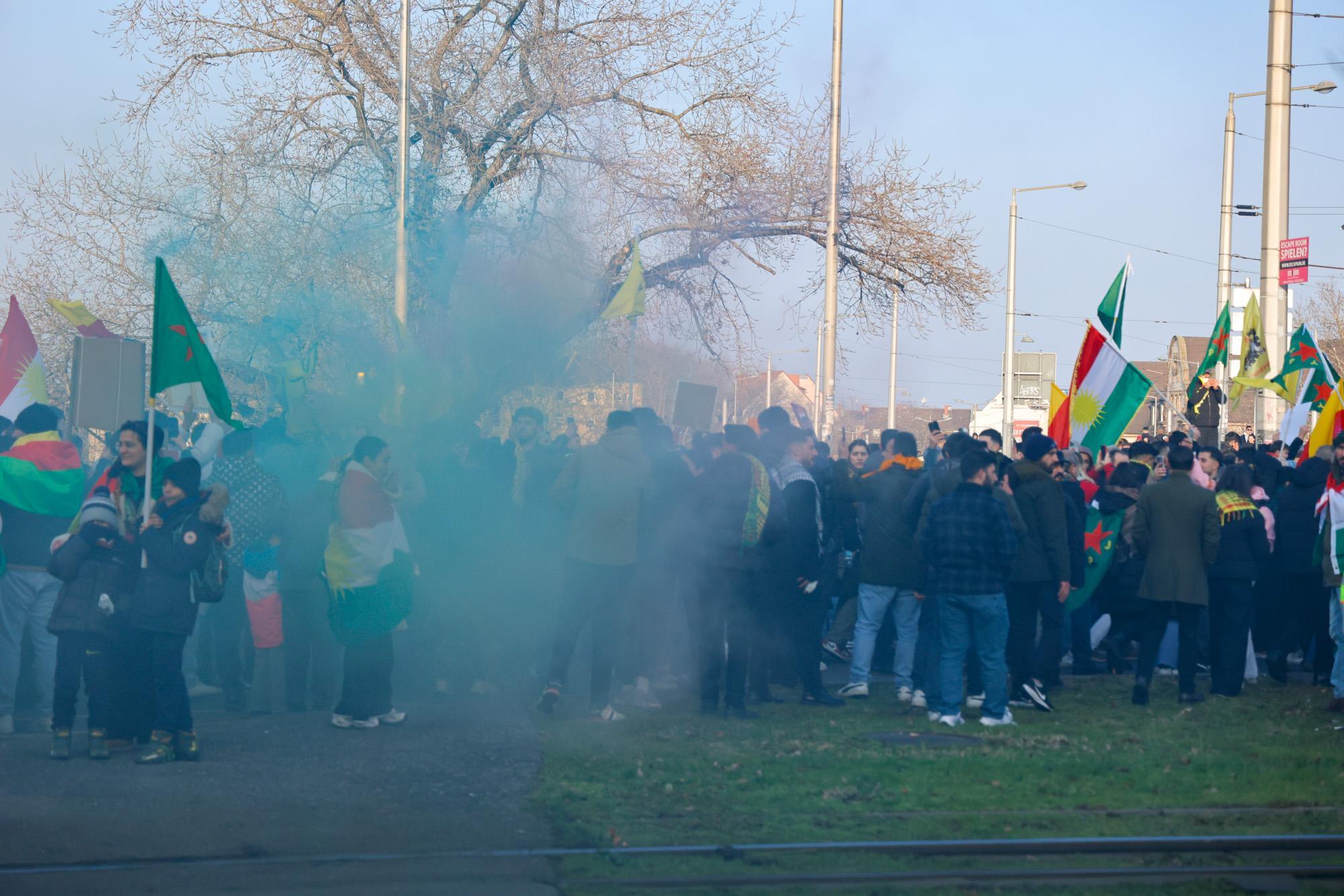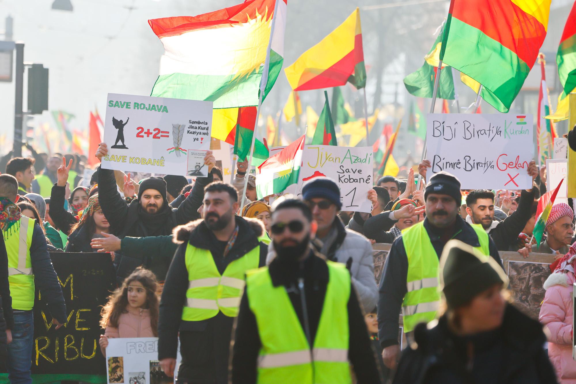 In Mannheim sind am Samstag tausende Kurdinnen und Kurden aus der ganzen Region in Solidarität mit der selbstverwalteten Region Rojava auf die Straße gegangen. Die demokratische und autonom verwaltete Region Rojava liegt in Nordostsyrien und wird aktuell von der staatlichen syrischen Armee angegriffen. Der Region soll die Autonomie aberkannt werden. Der islamistische Interimspräsident Ahmed al-Scharaa, auch genannt Al Dscholani, will die Region in seinen Staat eingliedern. Dabei wird er von islamistischen Milizen und der türkischen Regierung unterstützt.
