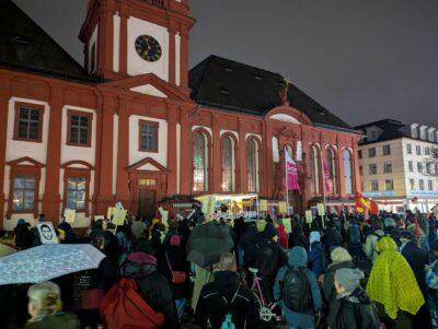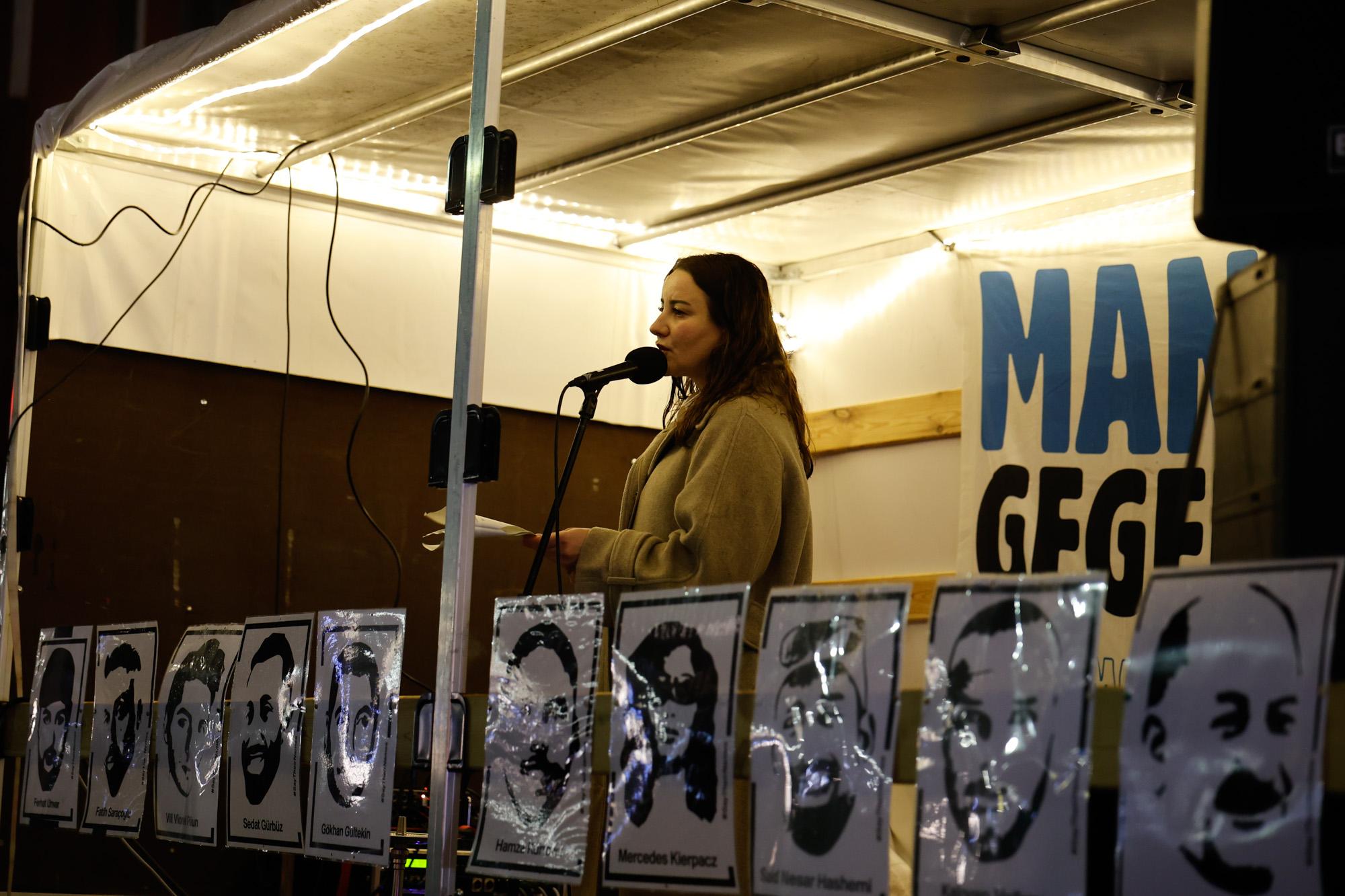 Am Abend des 19. Februars versammelten sich rund 200 Menschen in den Planken. Die Veranstaltung, organisiert vom Bündnis Mannheim gegen Rechts in Zusammenarbeit mit der Föderation Demokratischer Arbeitervereine (DIDF), wurde mit einem kurzen Beitrag eröffnet, der die tödlichen Folgen der Nacht des 19. Februar noch einmal zusammen fasste, gefolgt von einer Audio-Aufnahme von Angehörigen der Opfer, die aus ihrer Perspektive berichteten, wie es ihnen geht, was sie sechs Jahre nach der Tat bewegt und welche Forderungen sie stellen. Ein weiterer Beitrag des Bündnis Mannheim gegen Rechts thematisierte den rassistischen Hass des Täters und die Verantwortung rechter Organisationen und Parteien – konkret der AfD – für solche Taten.