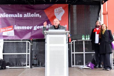 Ein erfolgreicher Kampf gegen die Armut, gegen das Abgehängtsein und für Gleichheit sei nicht nur ein sozialer Kampf sondern auch ein politischer. Gehe diese Entwicklung weiter in die falsche Richtung, mache das die Rechten wie die AfD erst stark und gefährde existenziell die Demokratie. Er nannte hierbei natürlich auch das Instrumentarium der Linken, das man nur anwenden müsse. Vermögensteuer, Erbschaftssteuer, stärkere Besteuerung auf Aktien- und Spekulationsgewinne usw.