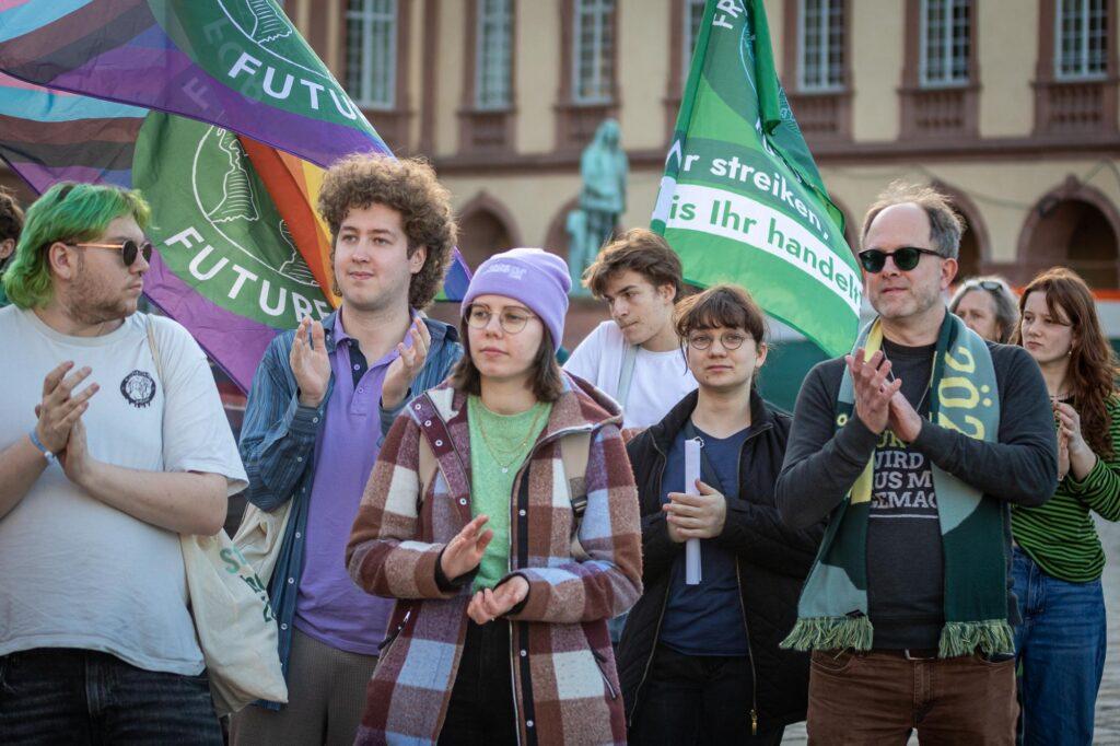 Chris Rihm (rechts) und andere Grüne kurz vor der Landtagswahl bei einer Fridays for Future Demo. Mittlerweile ist der Wahlkapmf vorbei. | Bild: Fridays for Future Mannheim