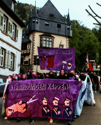 CG: Wie schon in den letzten Jahren ruft wieder ein breites Bündnis zu einer antifaschistischen und feministischen Vorabdenddemo auf. Unter dem Motto „Burschis in den Neckar fegen! Feministisch und antifaschistisch in den 1. Mai“ wollen wir ein klares Zeichen gegen Rechtsruck und Antifeminismus setzen, wobei wir nicht zuletzt die Rolle der rechten Studentenverbindungen thematisieren. Von der Stadtbücherei aus ziehen wir an den Verbindungshäusern vorbei in die Heidelberger Altstadt. Um ein starkes feministisches Signal zu senden, hat die Demo einen FLINTA*-Frontblock: Die Demospitze besteht ausschließlich aus Frauen, Lesben, inter, trans*, non-binary und agender Personen.